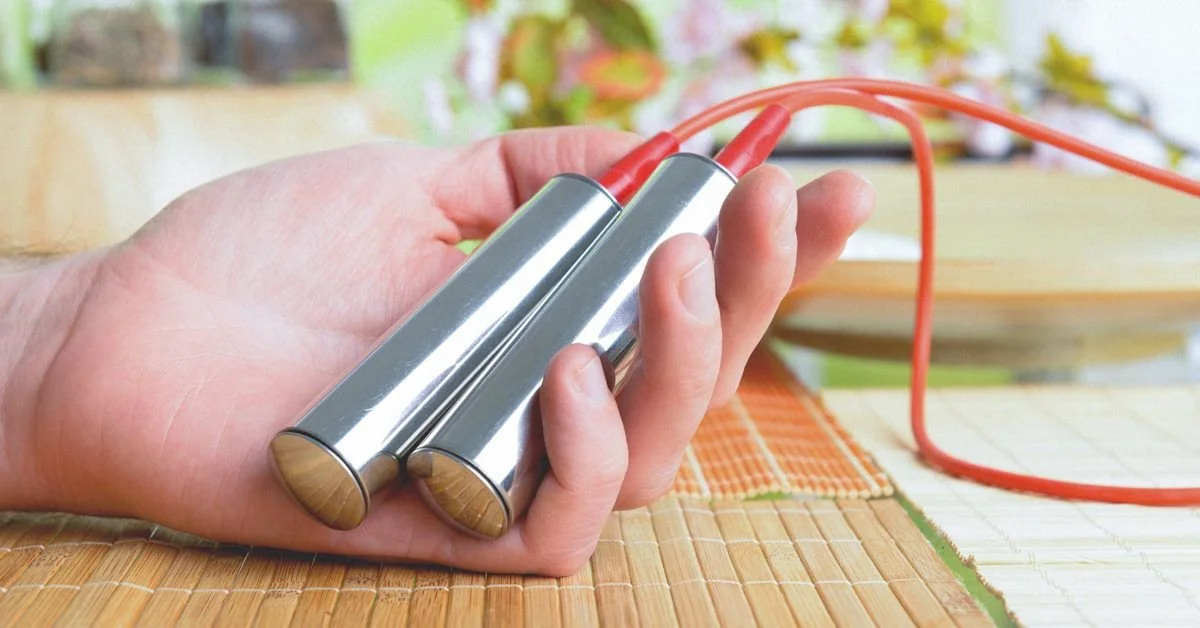 Handheld Wands — You hold a pair of metal cylinders, one in each hand, allowing a gentle current of frequencies to flow through your entire body in a continuous, calming stream.